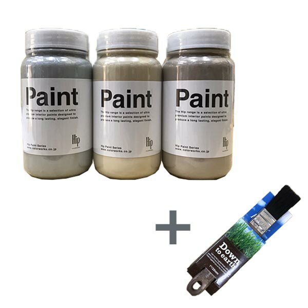 【 ハケ付 】Hip mini(ヒップミニ)北欧風グレイッシュ3色セット エッグシェル(2分ツヤ) 200ml(約1平米分)マインドブルー エクリュ モカ 水性ペンキ 水性塗料 DIY COLORWORKS カラーワークス 室内 ペンキ