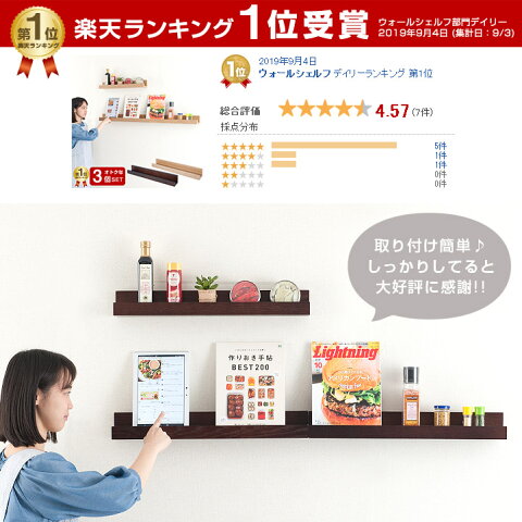 ウォールシェルフ 壁掛け飾り棚ナチュラルNKB-M60NA、ブラウンNKB-M60BR サイズ (約)幅60×奥行9×高さ8cm 耐荷重 約3kg(下記の詳細参照) 素 材 本体:天然木化粧、繊維板 表面塗装仕上げ ラッカー塗装 JANコード NKB-M60NA:4549813872092 NKB-M60BR:4549813872108 セット内容・付属品 <1個あたりの付属品>本体×1、専用フック×2、取り付け部×4(予備×1)、キャップ×4(予備×1)、固定ピン×12(予備×3)、ネジ×4(予備×1)、取り付け用定規×1 メーカー/ブランド ドウシシャ 耐荷重について ※耐荷重の目安:文庫本15冊程度で3kgになります。