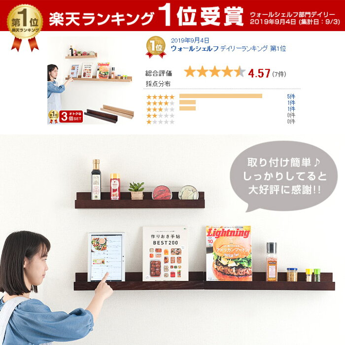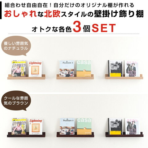 【お得な3個セット】 壁掛け 棚 賃貸 壁 傷つけない 棚 壁 収納 ウォールシェルフ ウォールラック 壁面収納棚 木棚 壁付け シェルフ 壁掛け インテリア スパイスラック 北欧 簡単取り付け 幅60 ナチュラル ブラウン 壁掛け飾り棚 nkb-m60_3